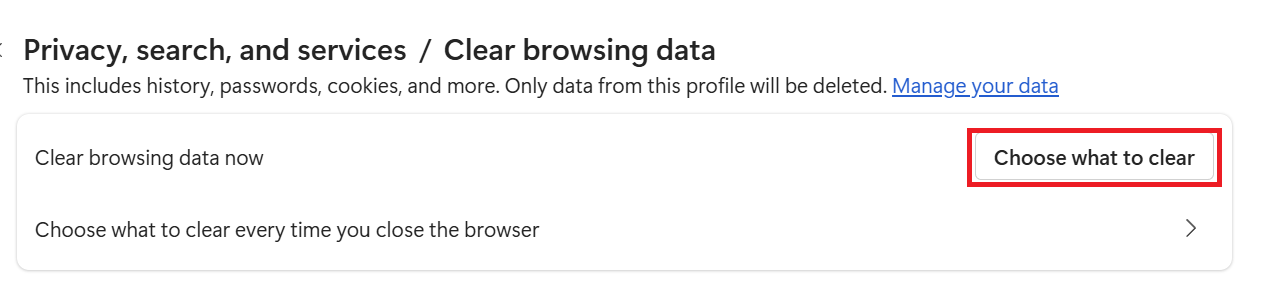 5. Uncheck everything except Cached images and files and then click Clear now. You can choose to clear other items in that list, by leaving them checked.