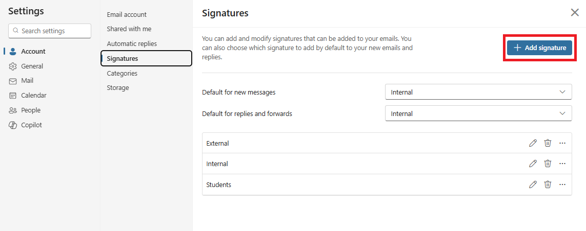 4. Add a name for your signature where it says Add a signature name. This can be something like main, internal, external, etc..