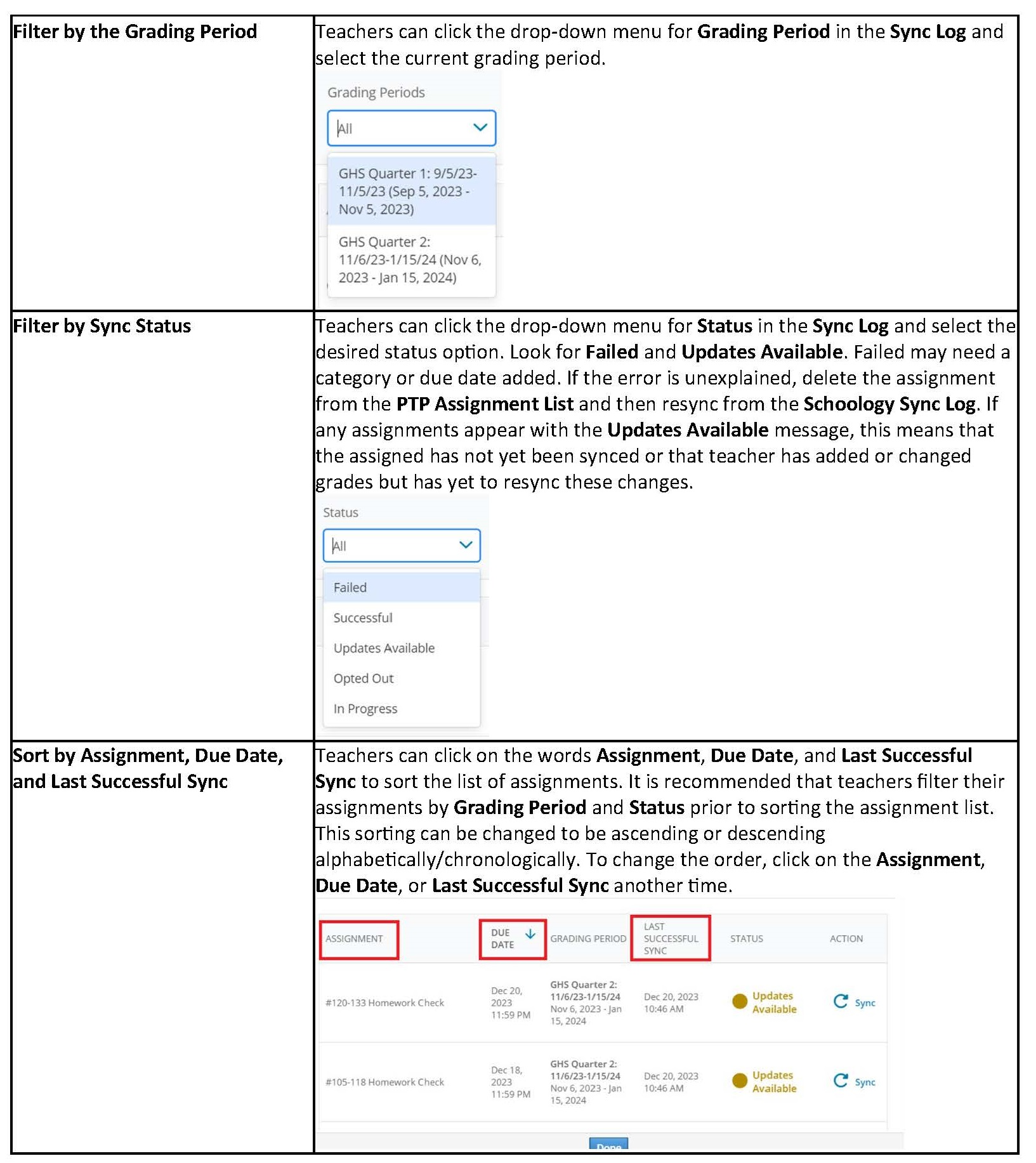 To make using the Sync Log easier, Schoology has new filtering options available including filtering by: