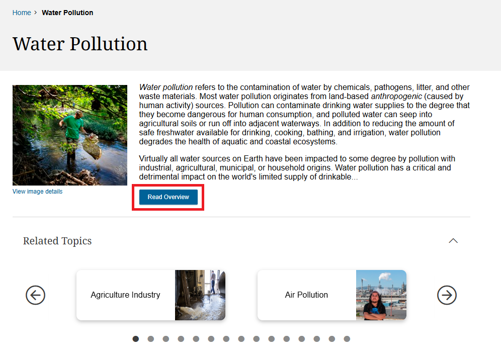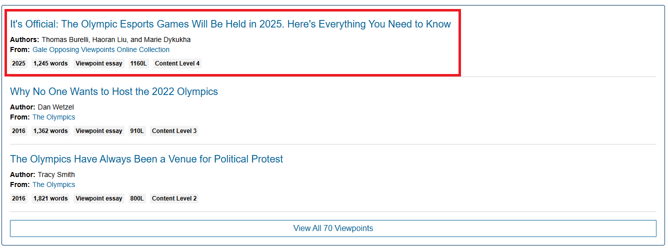 4. Click into the desired article by clicking on the title of the article or clicking the Read Overview button.