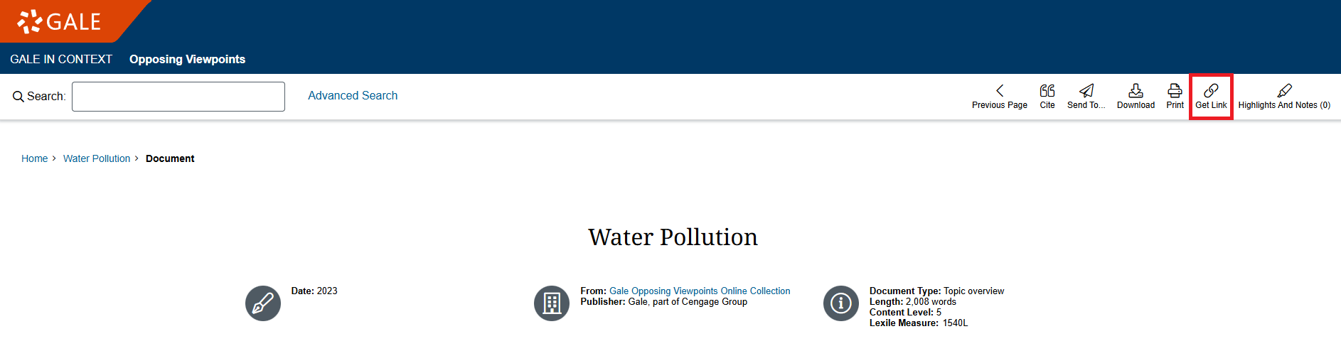 5. Click on the Get Link icon in the upper right-hand corner.