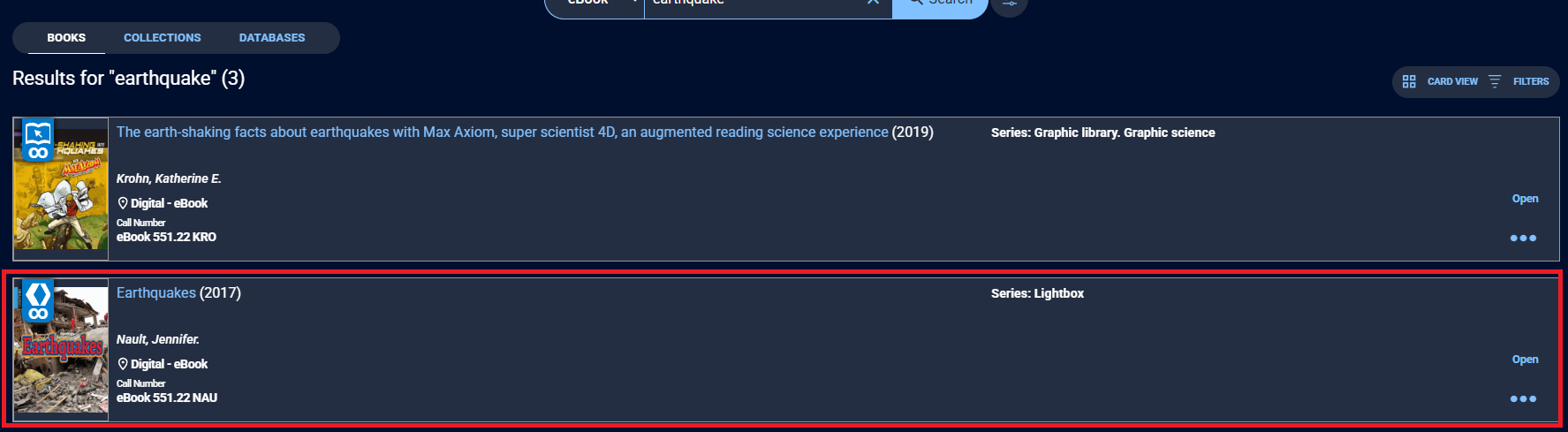2. Click on the title of the eBook you used in your work, but do not open the eBook itself.