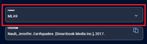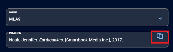 4. Click on the Copy icon (two overlapping rectangles) to the right of the citation to copy it.
