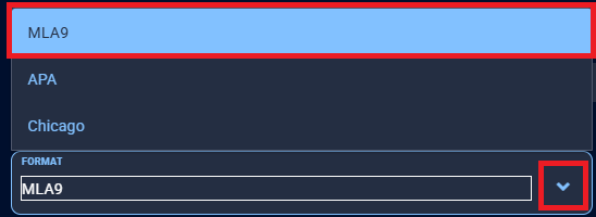 3. If the Format does not display MLA9, click on the drop-down menu and select it.