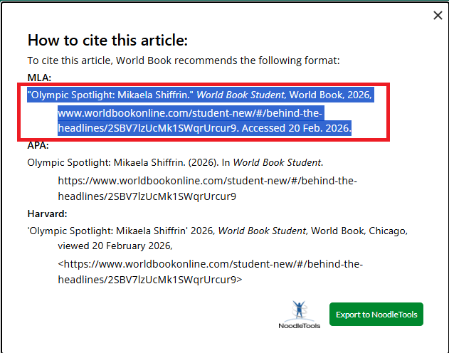 1. Open the World Book Online article you obtained information from.