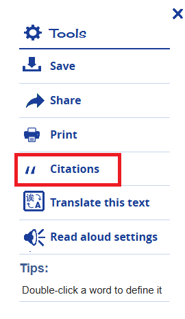 2. Click on Cite from the bottom menu.