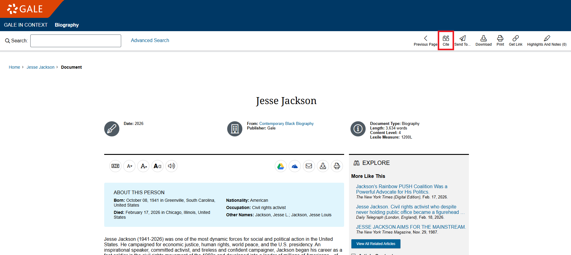 1. Open the Gale Database article you obtained information from.