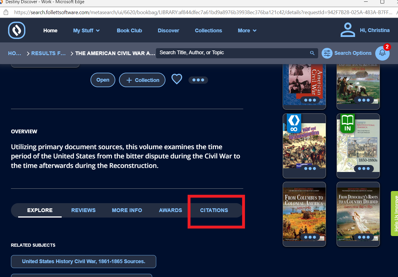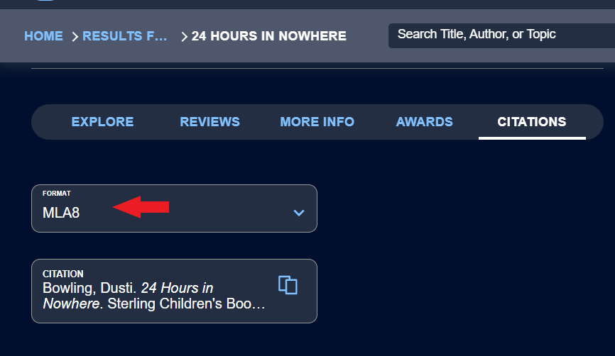 When using information from an eBook in a project, essay, research, or other school materials, you will need to cite it. To do this, please follow these instructions: