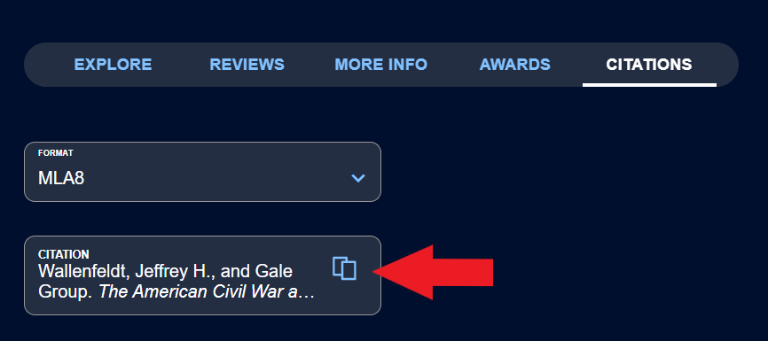 4. Click on the two rectangles icons to the right of the citation to copy it.