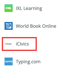 2. Click on iCivics from the left side bar. This will bring you to a Clever log in page.