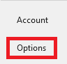 1. Click on File from the navigation menu and then at the bottom of the menu on the left side bar, click on Options.
