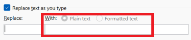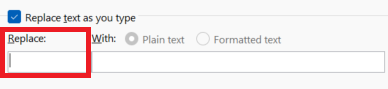 4. In the Replace box, type a word or phrase that you often misspell.