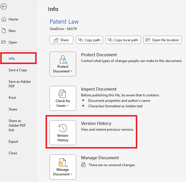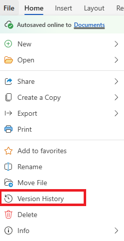 3. To save that version as a copy, click on File and then select Save As and save it as a different name. To Restore that version of the document, click on Restore. If you do not want to save or restore that version, close out of the document.