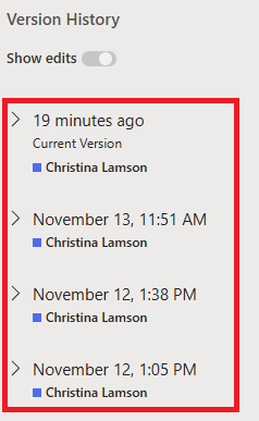 3. Choose a version of the document to view and click on it. This will open the document in a new tab.