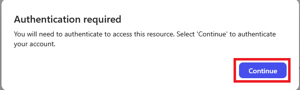 2. If you do not have MFA set up, you should see an Authentication required message. Click Continue.