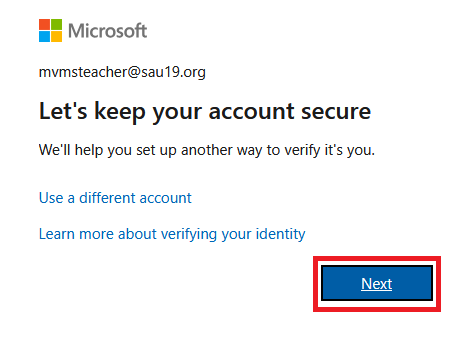 3. When the screen to keep your account secure appears, click Next.