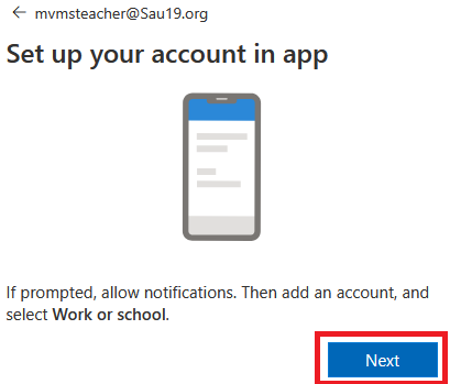 5. When the message appears to Set up your account in the app, click Next.