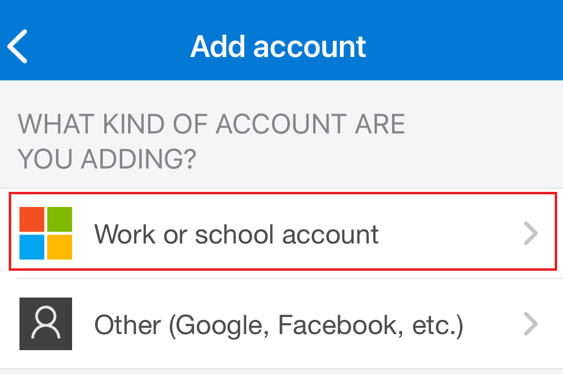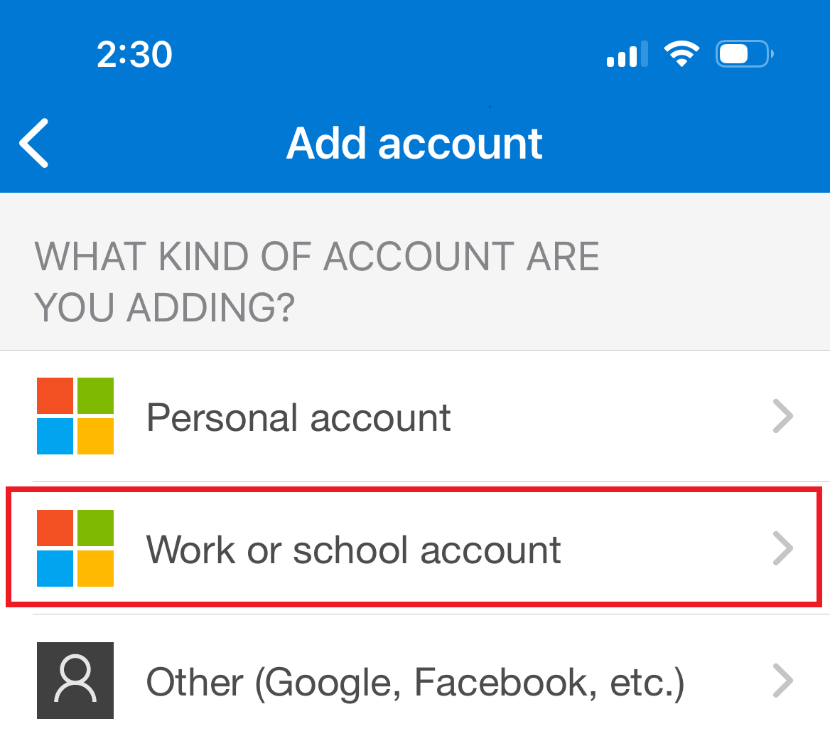 4. Click Work or school account.