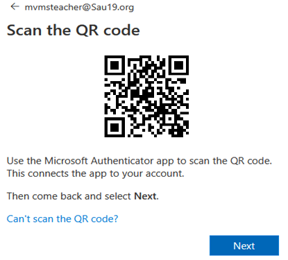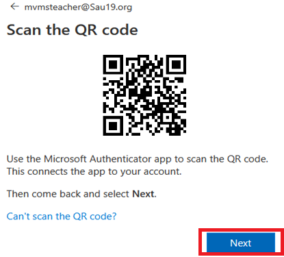 6. When the message appears on your computer to Scan the QR code, open the Microsoft Authenticator app on your phone.