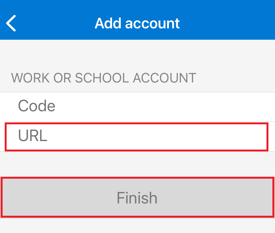 7. Go back into the Microsoft Authenticator app and paste the URL into the URL field. Then click Finish.